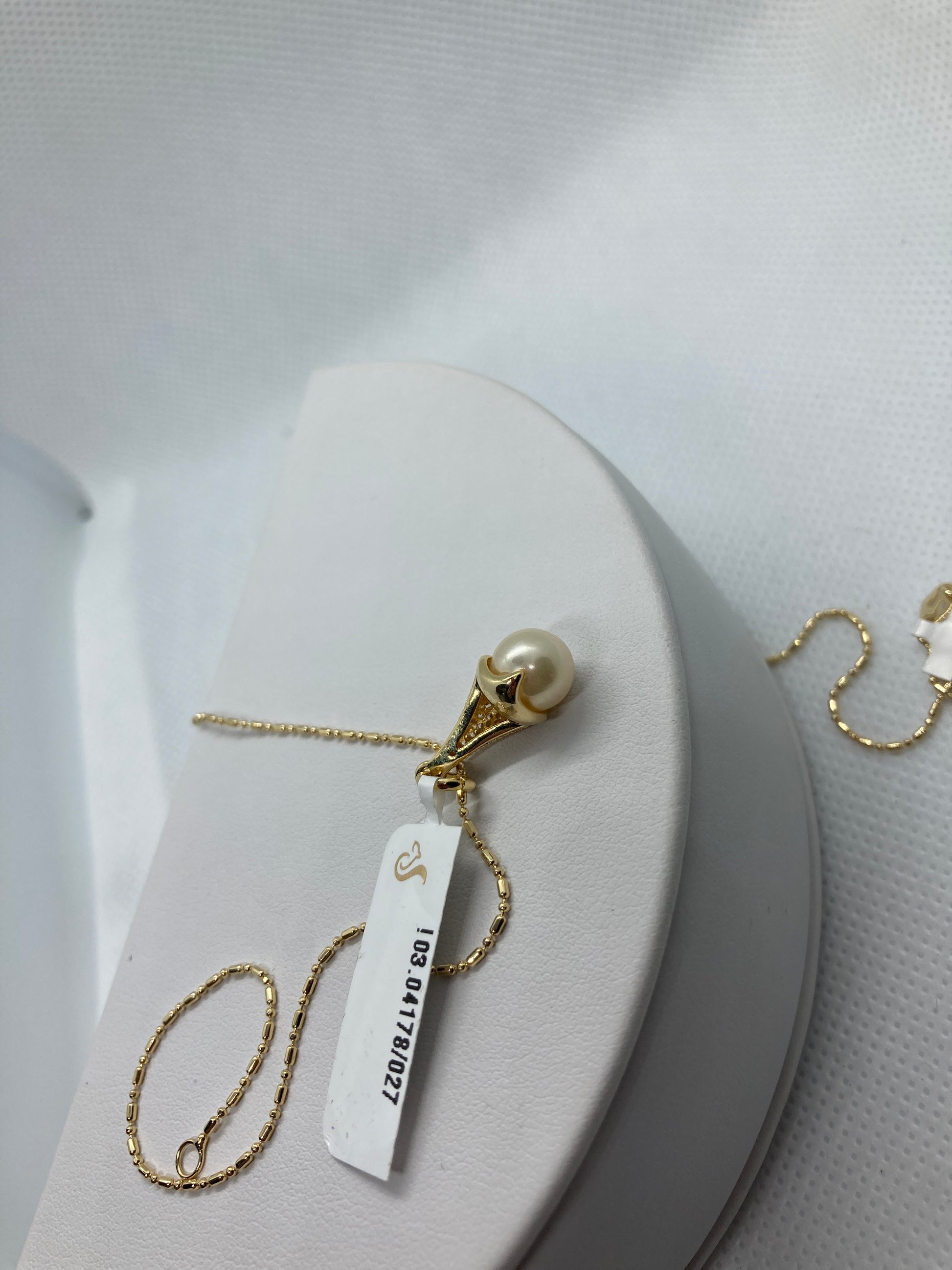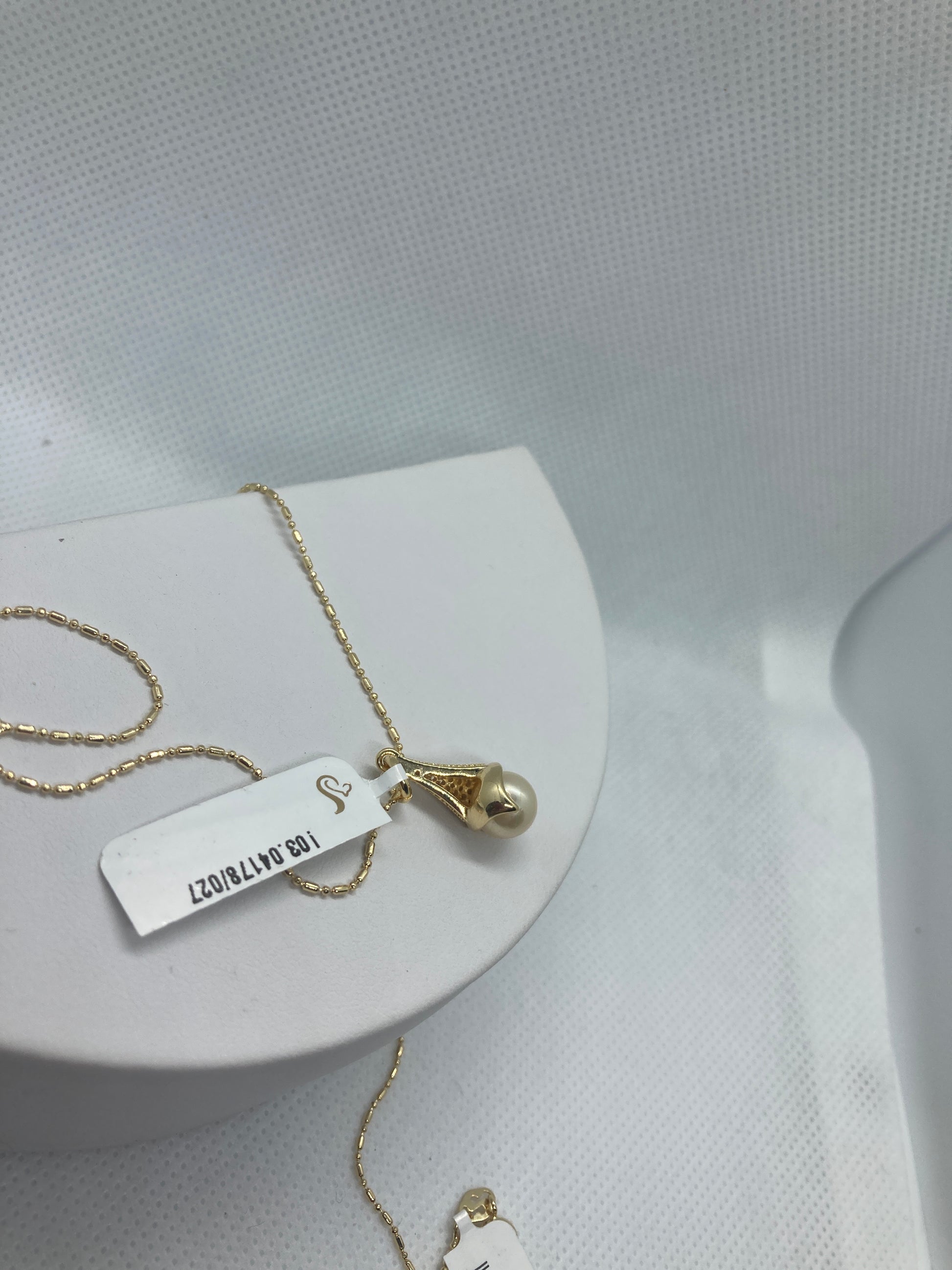 Dije con perla en forma de cono baño de oro de 18k